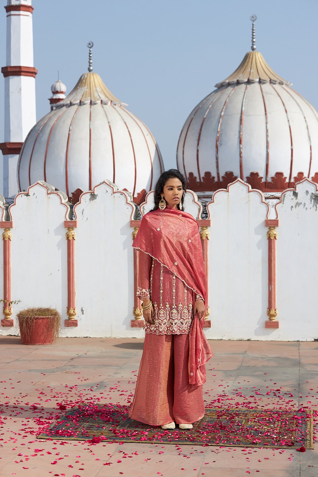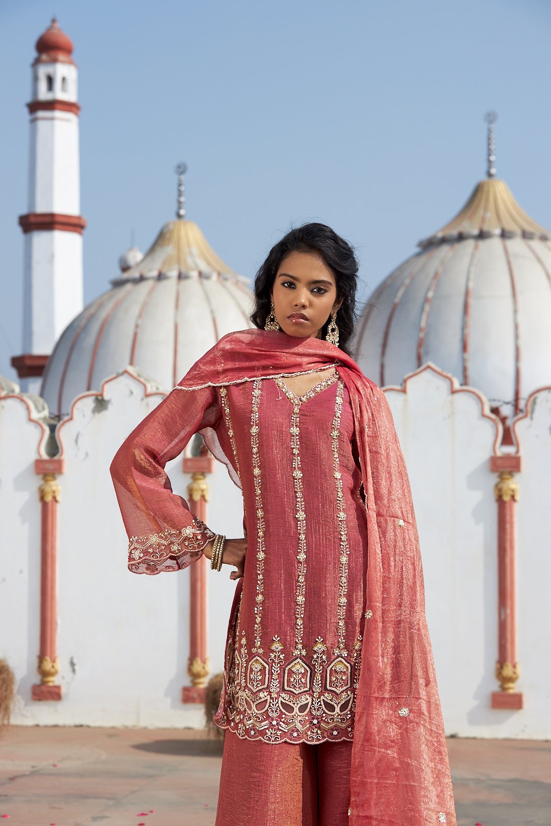 The PW-023 Tissue Crush Divider Suit Set is crafted for women who love contemporary festive fashion with a luxurious touch. Made from rich crush tissue fabric, this ensemble offers a graceful shimmer and structured fall.