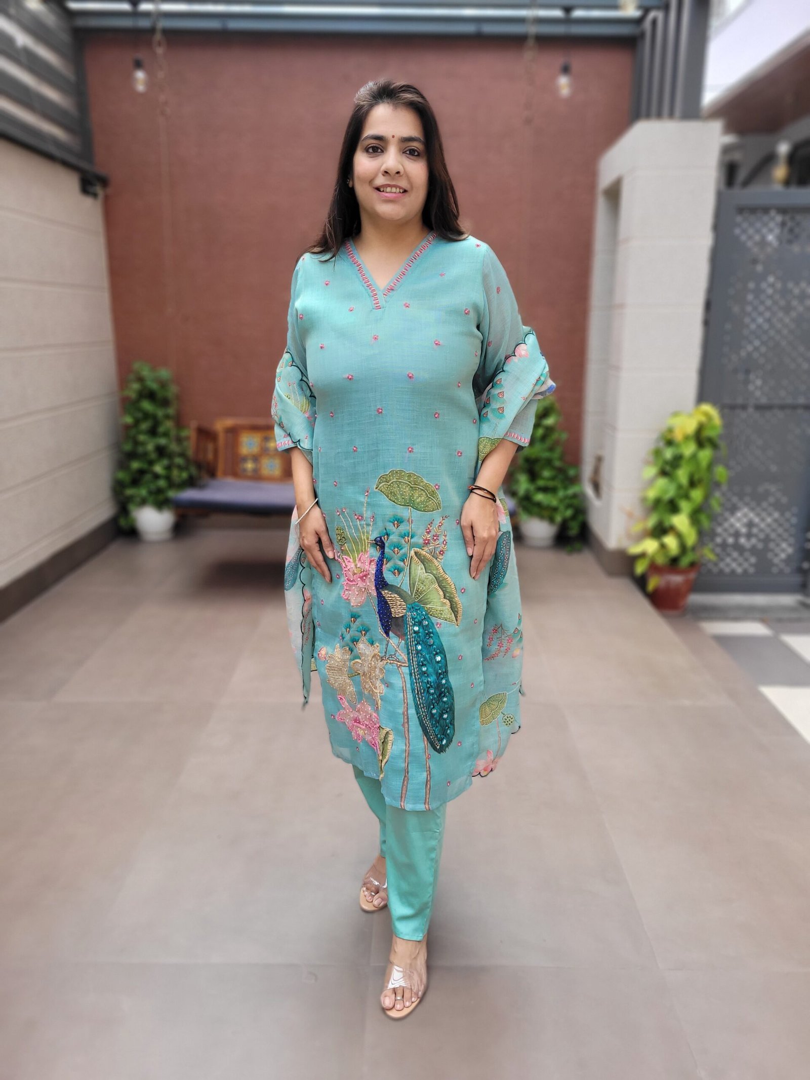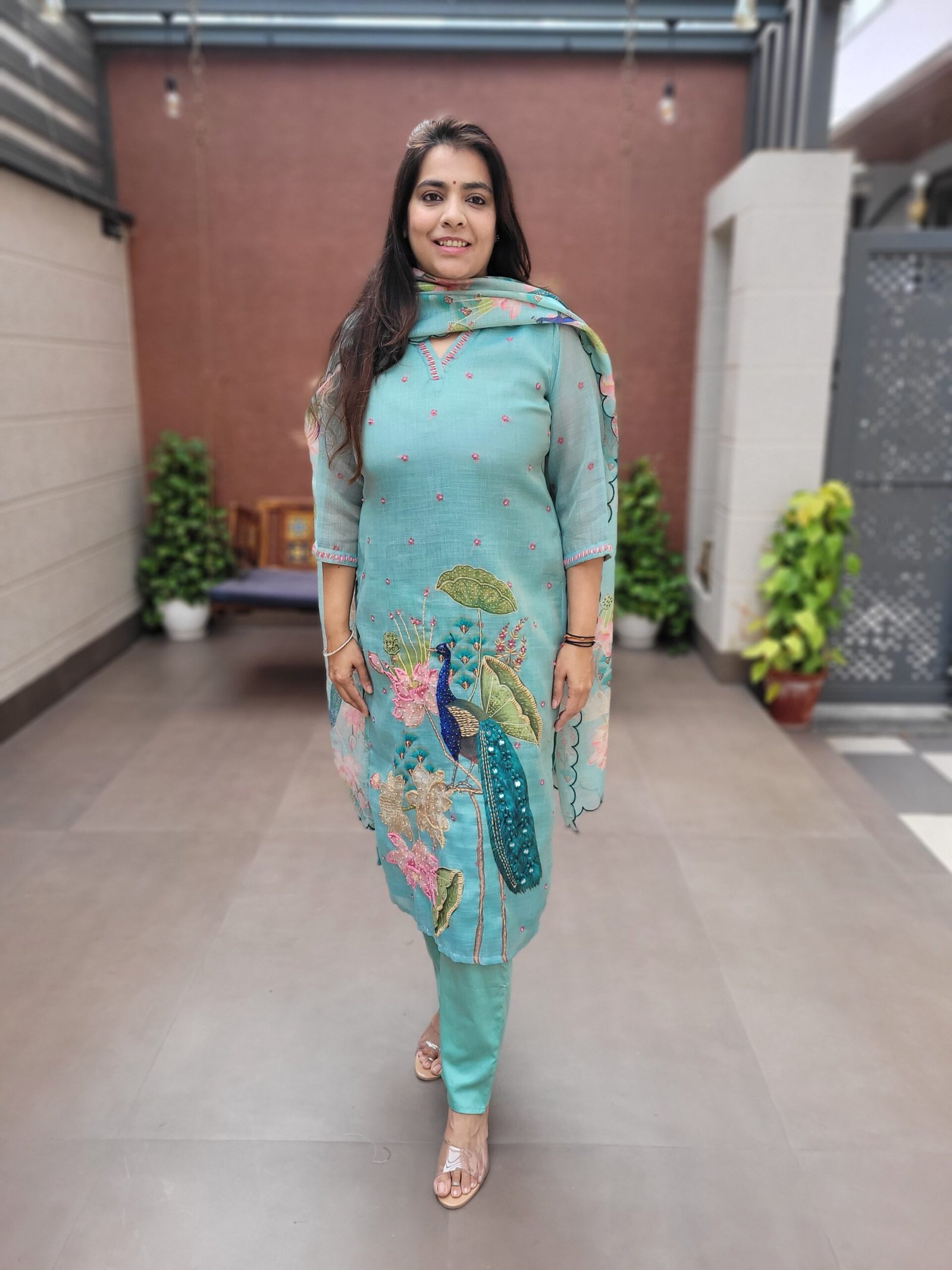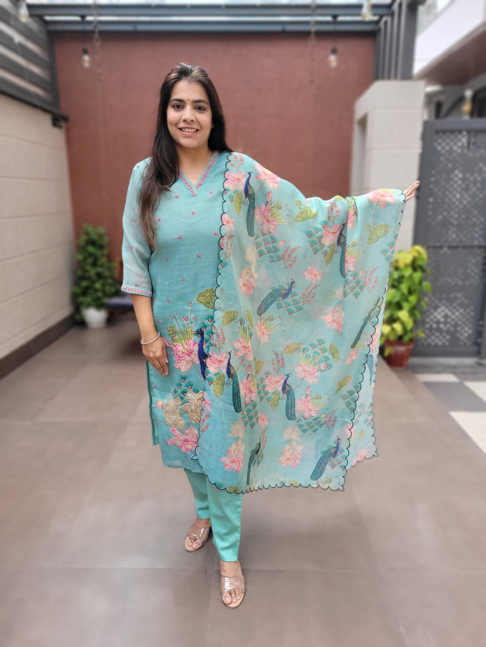 The soothing Mint and Pista shades elevate the overall look, making this set timeless and versatile for ethnic wardrobes.