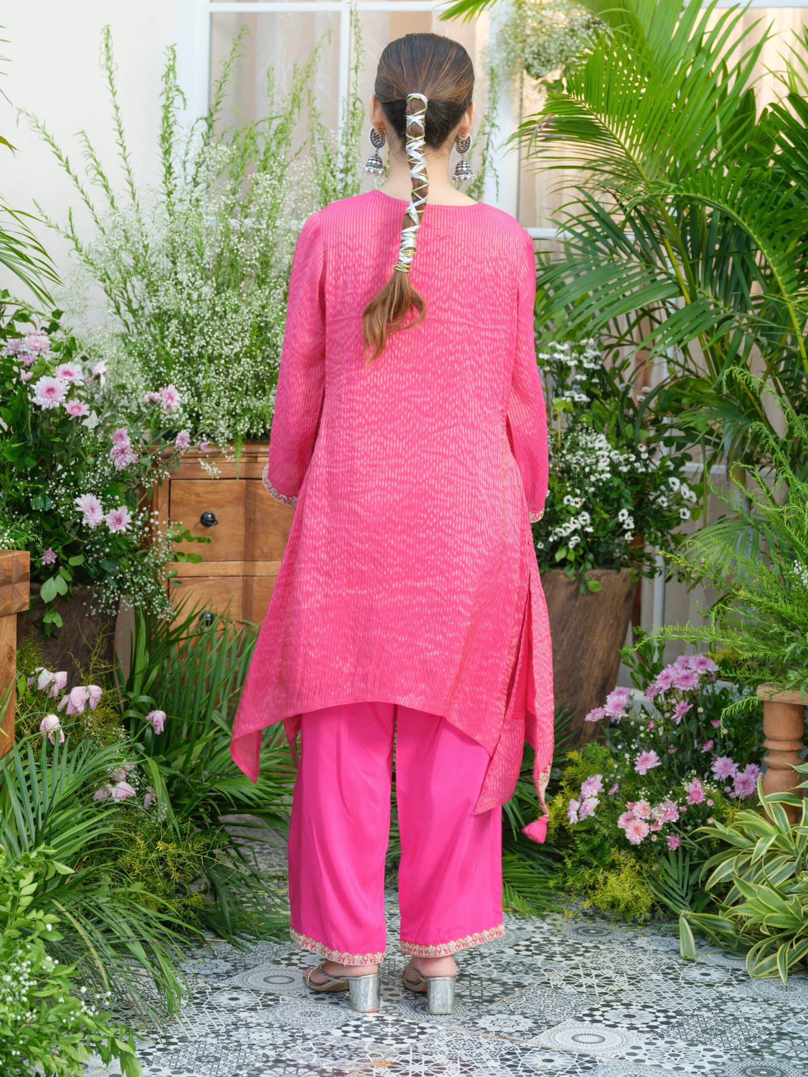The CS-039 Tissue Shimmer Co-ord Set is a chic and festive ensemble crafted from luxurious tissue shimmer fabric. Designed with a comfortable cotton lining, it offers both style and ease of wear.