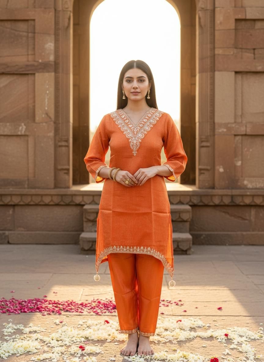 The CS-039 Tissue Shimmer Co-Ord Set blends modern styling with festive elegance. Crafted from shimmering tissue fabric and supported with a comfortable cotton lining, this set ensures both glamour and ease.