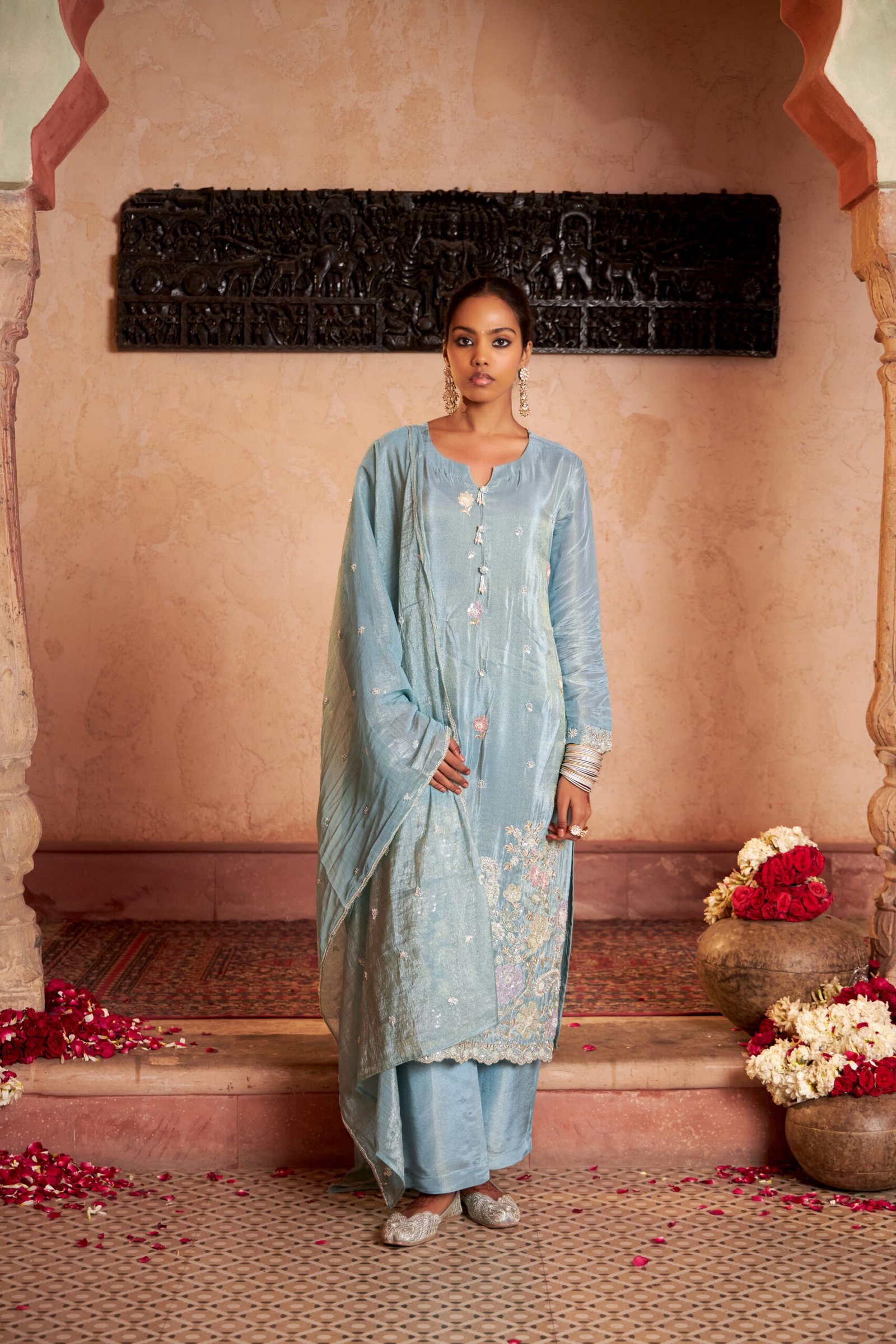Heavy beads work enhances the kurta with sparkling detail, while the matching dupatta adds coordinated elegance. A comfortable cotton lining ensures ease of wear throughout long celebrations. Ideal for weddings, parties, and evening functions.