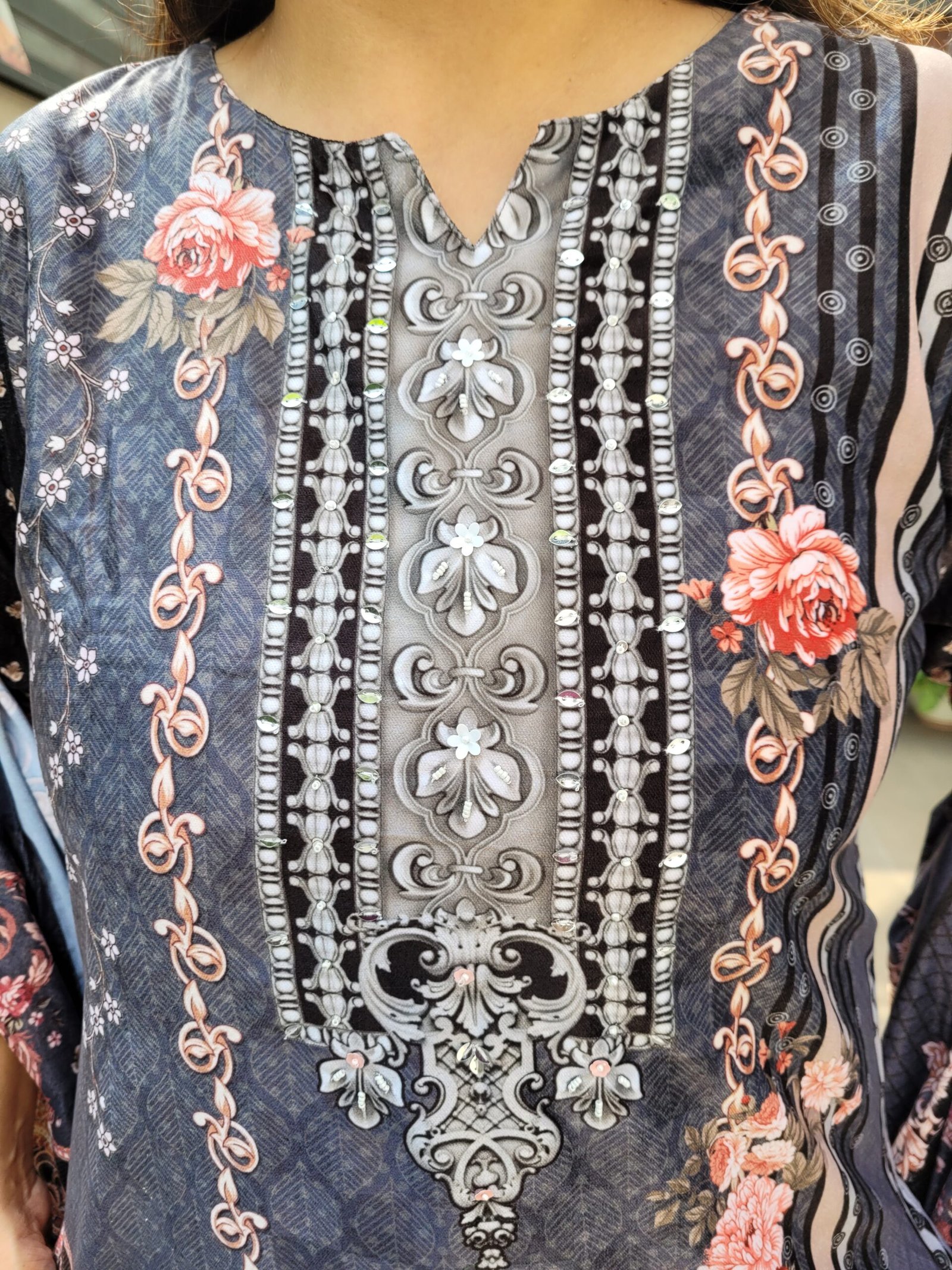 Material: Heavy Velvet with Digital Print and Handwork Yoke